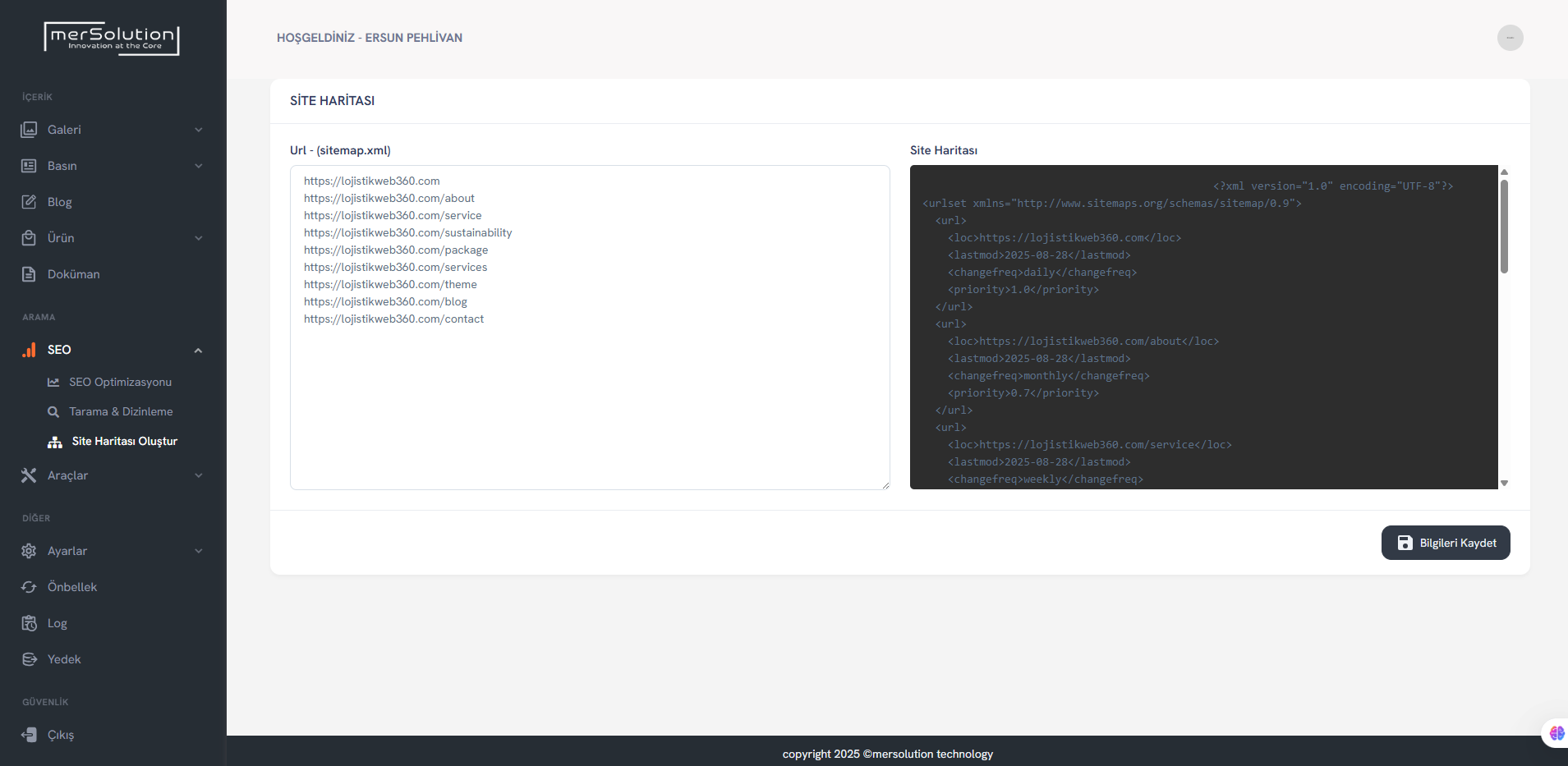 Site haritası otomatik oluşturularak arama motorlarında daha hızlı indekslenme sağlanır.