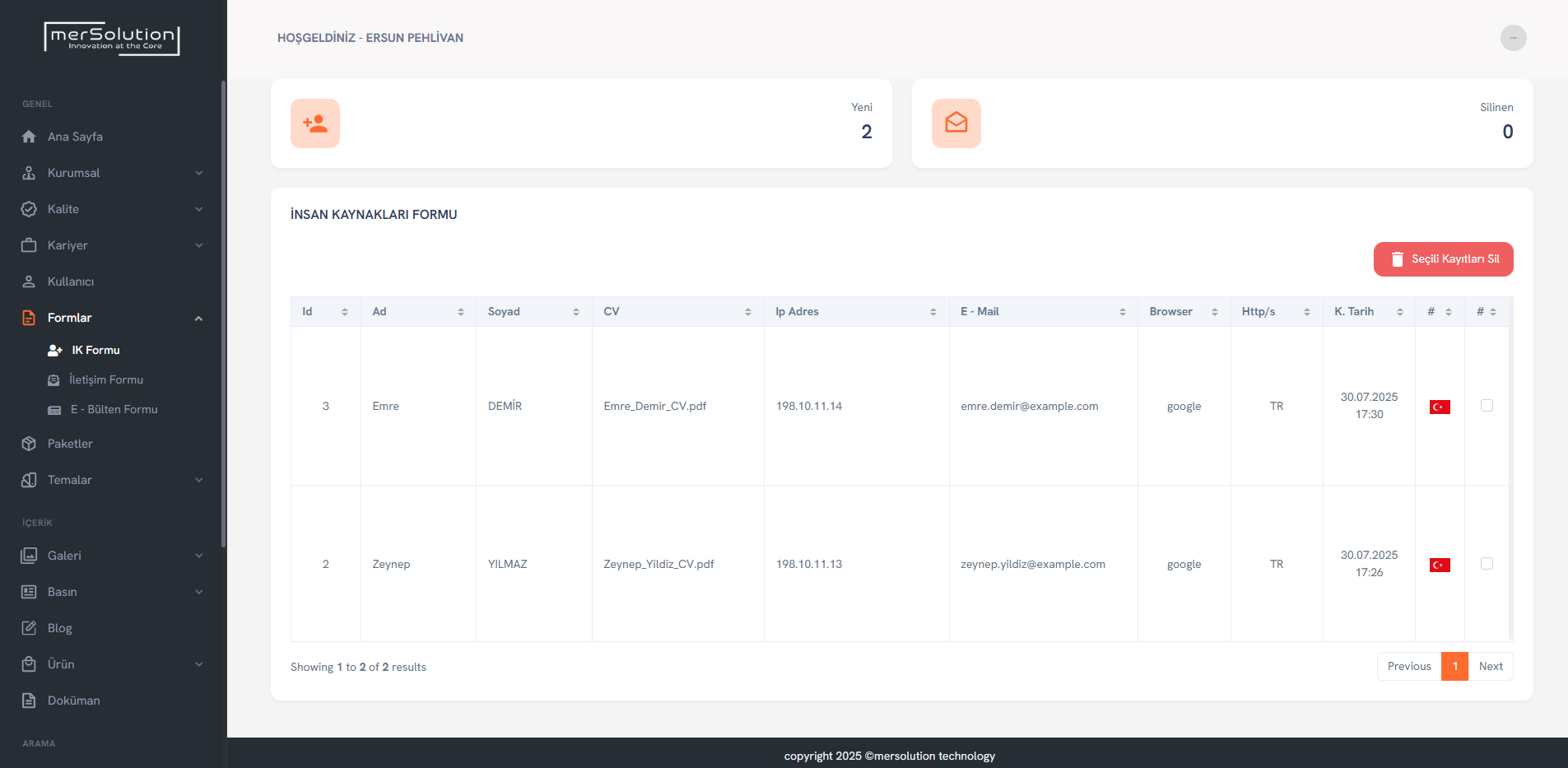 Ziyaretçi etkileşimini artırmak için gelişmiş iletişim formları ve insan kaynakları başvuru alanları yer alır.