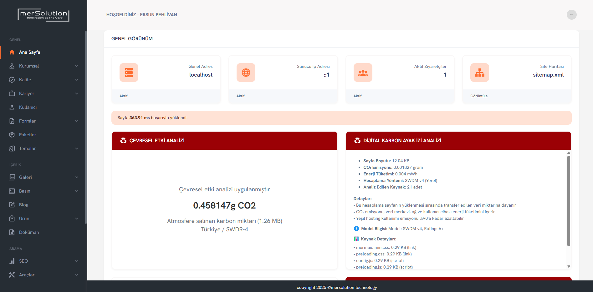 Panel üzerinden veritabanı yedeği alma, önbellek temizleme ve sistem log takibini kolayca yapabilirsiniz.